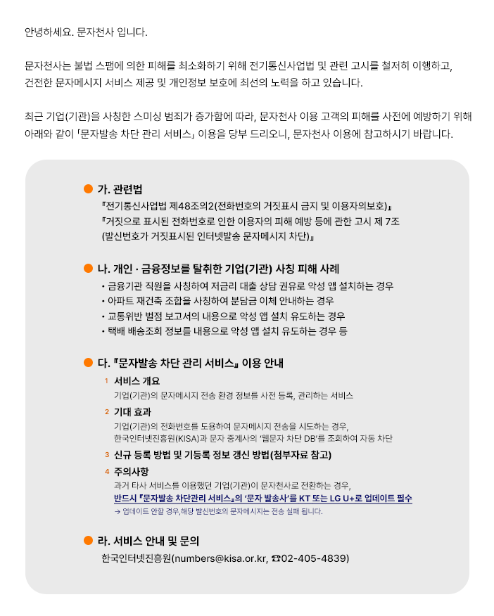 ¹®ÀÚ ¹ß¼Û Â÷´Ü°ü¸® ¼ºñ½º ¾È³» °øÁö